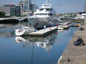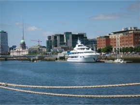 | Dublin moorings in the heart of Dublin's Docklands, designed and installed by Milford Marina Systems, was put to the test today. Paraffin, a yacht of over 1000 tonnes, 65m (217ft) long, moored here today. The skipper professed it to be the best yet ! |